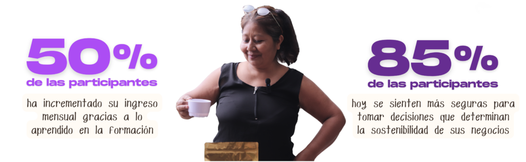 A través de talleres prácticos el proyecto fortalece las capacidades empresariales de productoras de café para mejorar la rentabilidad de sus actividades y sus condiciones de vida. Se fomenta la adopción de prácticas agroecológicas sostenibles, para preservar los recursos naturales y mejorar la calidad del café y se promueve el comercio justo, facilitando el acceso de las productoras a mercados más rentables y estableciendo relaciones comerciales equitativas con los compradores.